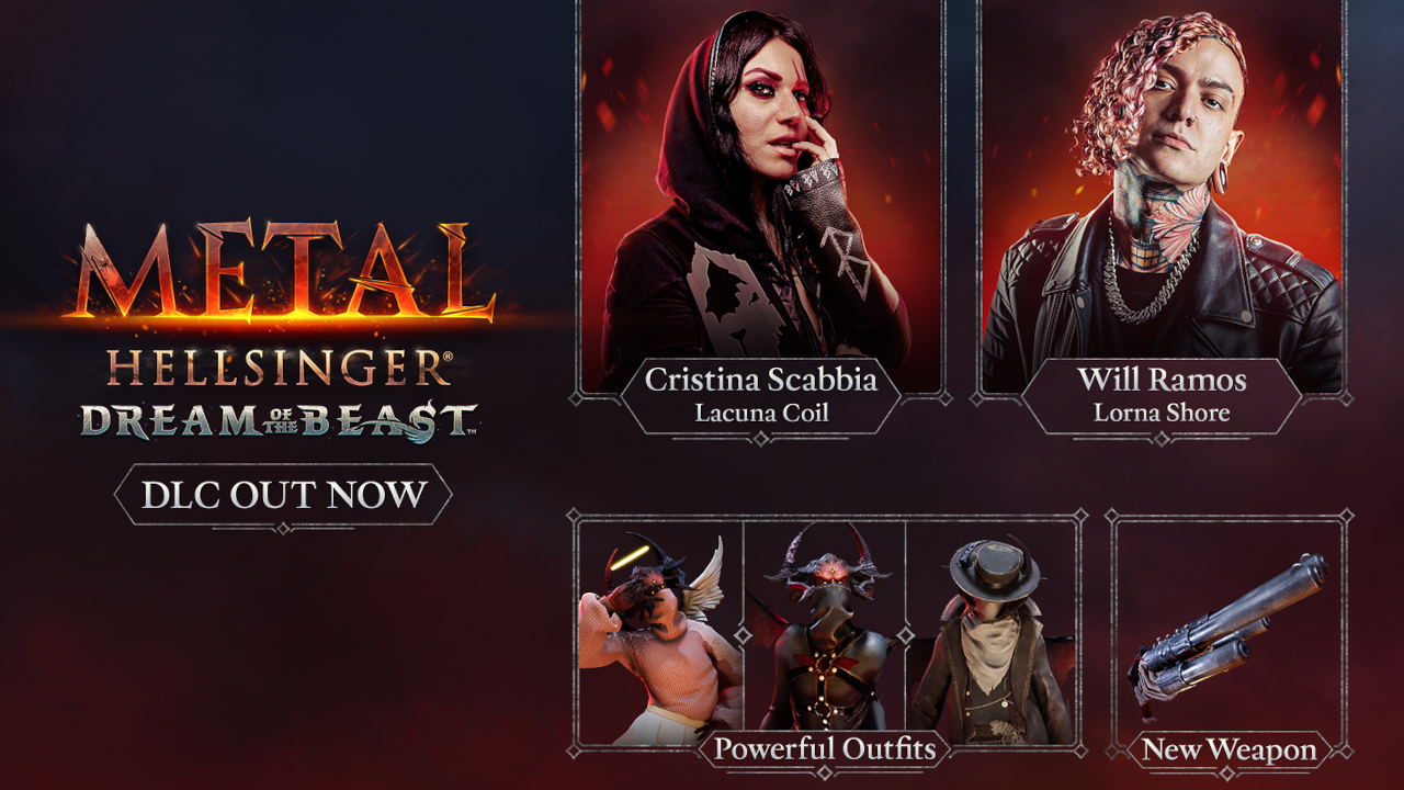Metal: Hellsinger, der mehrfach preisgekrönte Rhythmus-FPS von Entwickler The Outsiders und Publisher Funcom, veröffentlicht heute seinen ersten DLC "Dream of the Beast". Das Content-Pack für den Rhythmus-First-Person-Shooter Metal: Hellsinger beinhaltet zwei neue Songs, die von Cristina Scabbia (Lacuna Coil) und Will Ramos (Lorna Shore) gesungen werden, mächtige neue Outfits und brandneue Waffen.