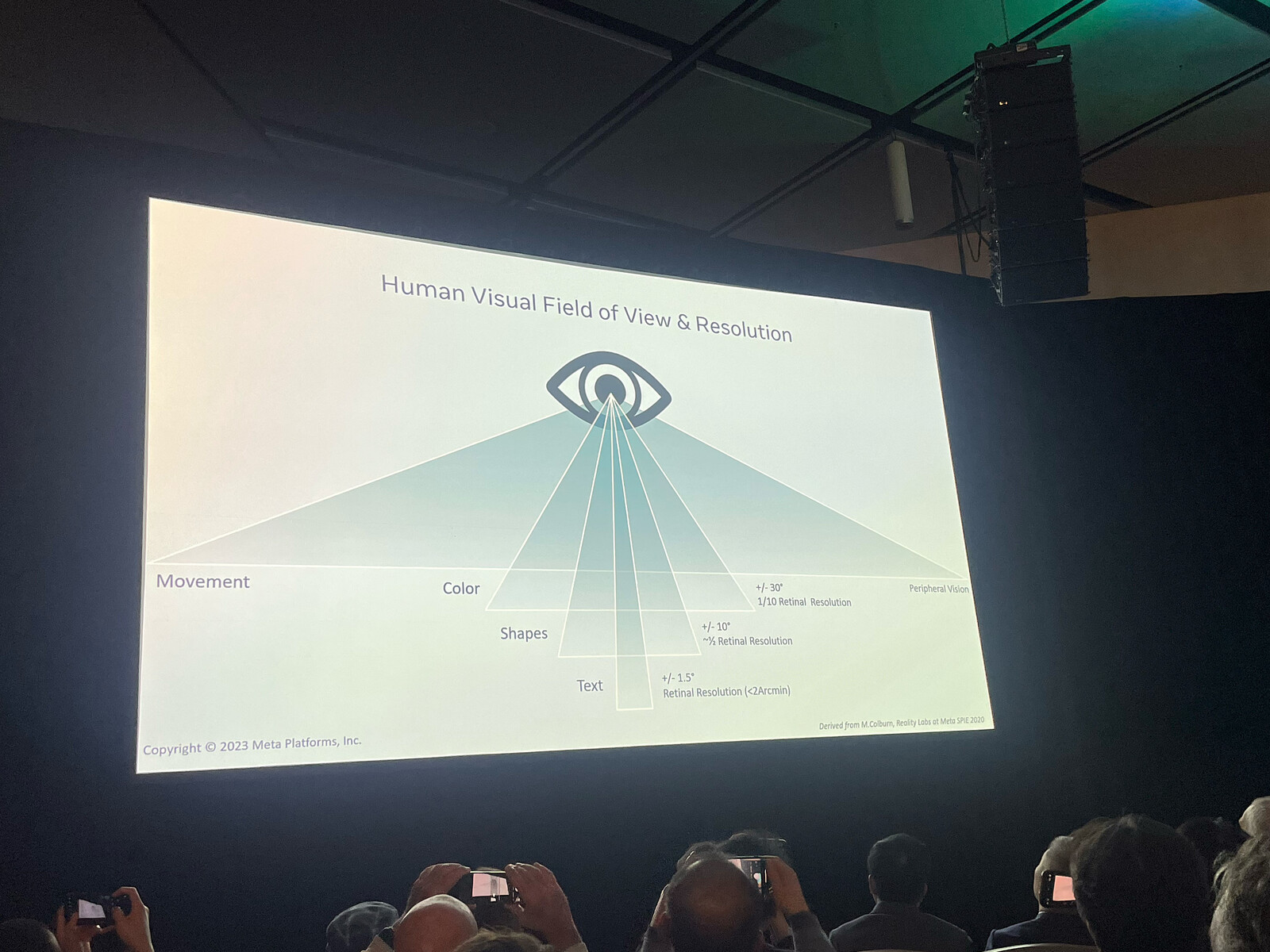 Um Strom zu sparen, soll zudem das menschliche Sichtfeld mit berücksichtigt werden. Im peripheren Sehen sieht der Mensch etwa bei weitem nicht so viel wie im zentralen Bereich des Auges. Das könnte eine Brille ausnutzen und entsprechend stufenweise weniger detailliert in Richtung der Ränder rendern.