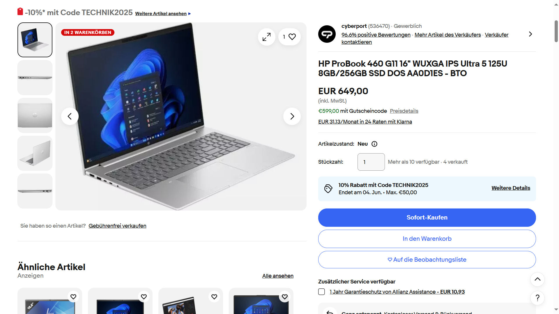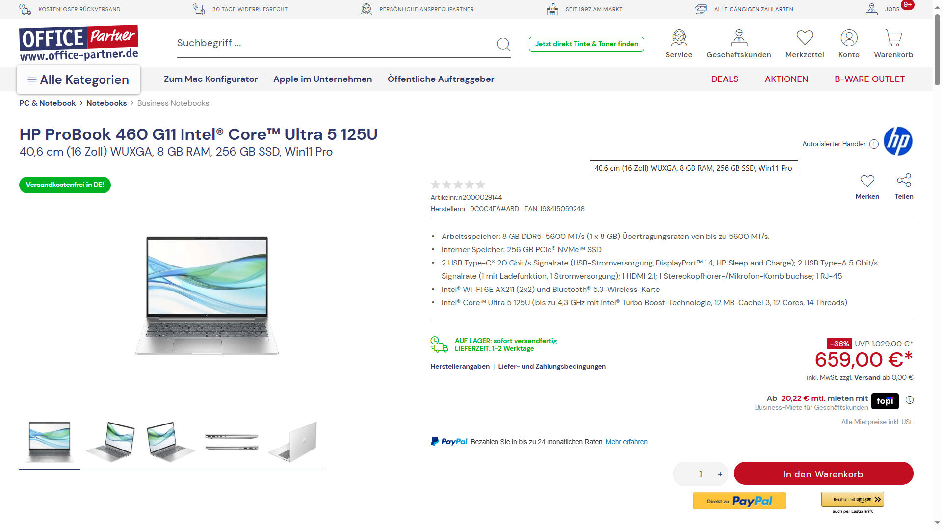 - Mit Windows 11 Pro: Aktuell führen Office-Partner.de und Playox.de die Variante 9C0C4EA zu einem Preis von 659 Euro im Sortiment. HP gewährt im Rahmen einer CashBack-Aktion einen Rabatt von 50 Euro (Kaufdatum: 01.10.2024 bis 30.06.2025).