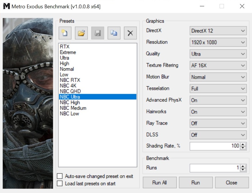 Lob verdienen die Entwickler für den eingebauten Benchmark, wenngleich dieser nicht ingame zugänglich ist, sondern im Ordner des Spiels gestartet werden muss, was wir für etwas umständlich halten. Der Benchmark dauert rund 1:45 Minuten und zeigt eine Kamerafahrt durch Außen- und Innenareale. Im Vergleich zum „echten“ Gameplay ist die Sequenz ziemlich anspruchsvoll, geht also Richtung Worst-Case-Szenario. Zum Abschluss präsentiert Metro Exodus eine detaillierte Auswertung mit den minimalen, durchschnittlichen und maximalen Bildern pro Sekunde.