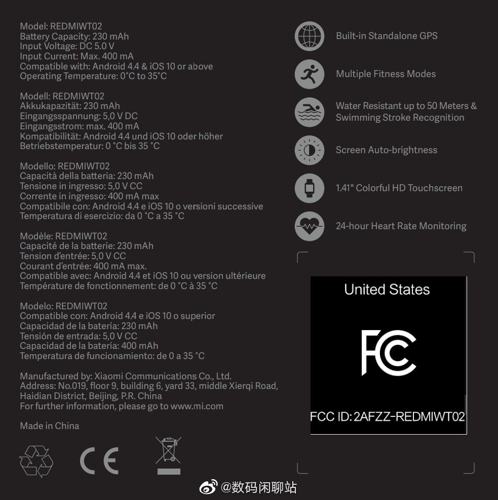 Im Gegensatz zur Mi Watch zeigt die Mi Watch Lite kein rundes sondern ein rechteckiges Design, entspricht also mehr dem bekannten Apple Watch-Look und wird laut FCC GPS und 24 Stunden Herzfrequenz-Überwachung bieten. Die Mi Watch Lite ist bis zu 50 Meter wasserdicht und unterstützt natürlich vielfältige Sport-Stile, unter anderem auch explizit Schwimmen. Das Display misst offenbar 1,41 Zoll in der Diagonale und regelt die Helligkeit automatisch, der Akku hat eine Kapazität von 230 mAh. Als Pairing-Partner werden alle Smartphones höher als iOS 10 oder Android 4.4 unterstützt.