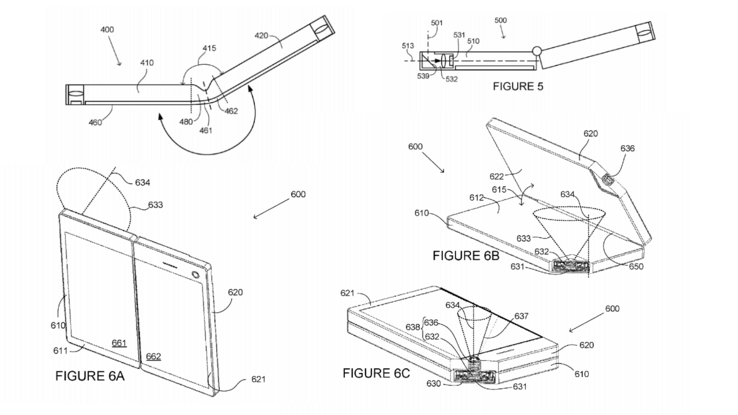 In den letzten Tagen sind erneut Patente in Bezug auf das neuartige Gerät aufgetaucht (siehe unten), das möglicherweise einmal im Rahmen der Surface-Familie verkauft wird. Die Bilder zeigen unterschiedliche Formfaktoren, einmal eher als faltbares Tablet mit zwei separaten Displays, einmal mit offensichtlich flexiblem Display. Auch Kamerafeatures werden hier bereits recht detailliert dargestellt und zwar als eine Art Zoom-Linse mit unterschiedlicher Brennweite. Die Patente stammen allerdings noch aus dem Jahr 2016 und sind vom Nokia-Imaging-Team wie Thurrott.com schreibt.