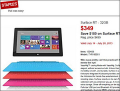 In den USA senkt Microsoft massiv die Preise für sein Tablet Surface RT. Bei Staples sind die um 150 US-Dollar im Preis reduzierten Surface-Modelle mit Windows RT bereits ab dem 14. Juli erhältlich. Erst vor Kurzem hatte Microsoft sein Windows-RT-Tablet Surface RT mit 32 GByte Speicher in Deutschland für Bildungseinrichtungen zu Preisen ab rund 192 Euro angeboten.