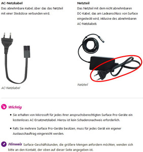 Von dem Recall ebenfalls nicht betroffen sind die Netzteile selbst, Netzkabel und Netzteile für die Dockingstations für Microsoft Surface Pro, Microsoft Surface Pro 2, Microsoft Surface Pro 3 und Microsoft Surface 3.