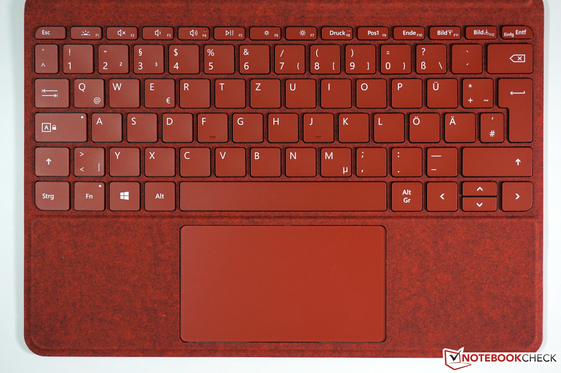 Das optionale Surface Type Cover ist eine gute Möglichkeit, das Surface Go 2 um eine Tastatur zu erweitern. Zudem ist sie mit rund 100 Euro nicht zu teuer. Durch Magneten gibt es zwei Positionen, entweder flach oder leicht angestellt. Aufgrund der Größe sind auch die Tasten etwas kleiner und der Tastenhub ist recht kurz, dennoch ist der Anschlag sehr fest und präzise. Zum gelegentlichen Schreiben von Texten ist die Tastatur gut geeignet.