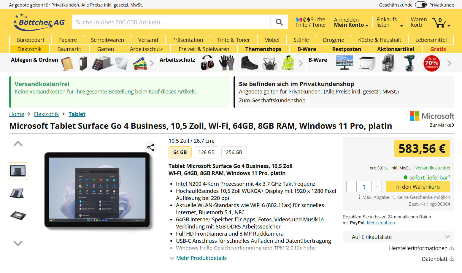 Die Suche nach einem Windows-Tablet endet mit überschaubarem Ergebnis. Jenseits der Surface-Modelle aus dem Hause Microsoft hält sich das Angebot stark in Grenzen. Entsprechend hoch fällt das Preisniveau entsprechender Geräte aus. Aktuell führt die Böttcher AG mit dem Surface Go 4 das günstigste Modell aus Microsofts Surface-Portfolio zu einem Preis von 583,56 Euro im Sortiment. Einem unserer Tests musste sich das Microsoft-Tablet noch nicht stellen.
