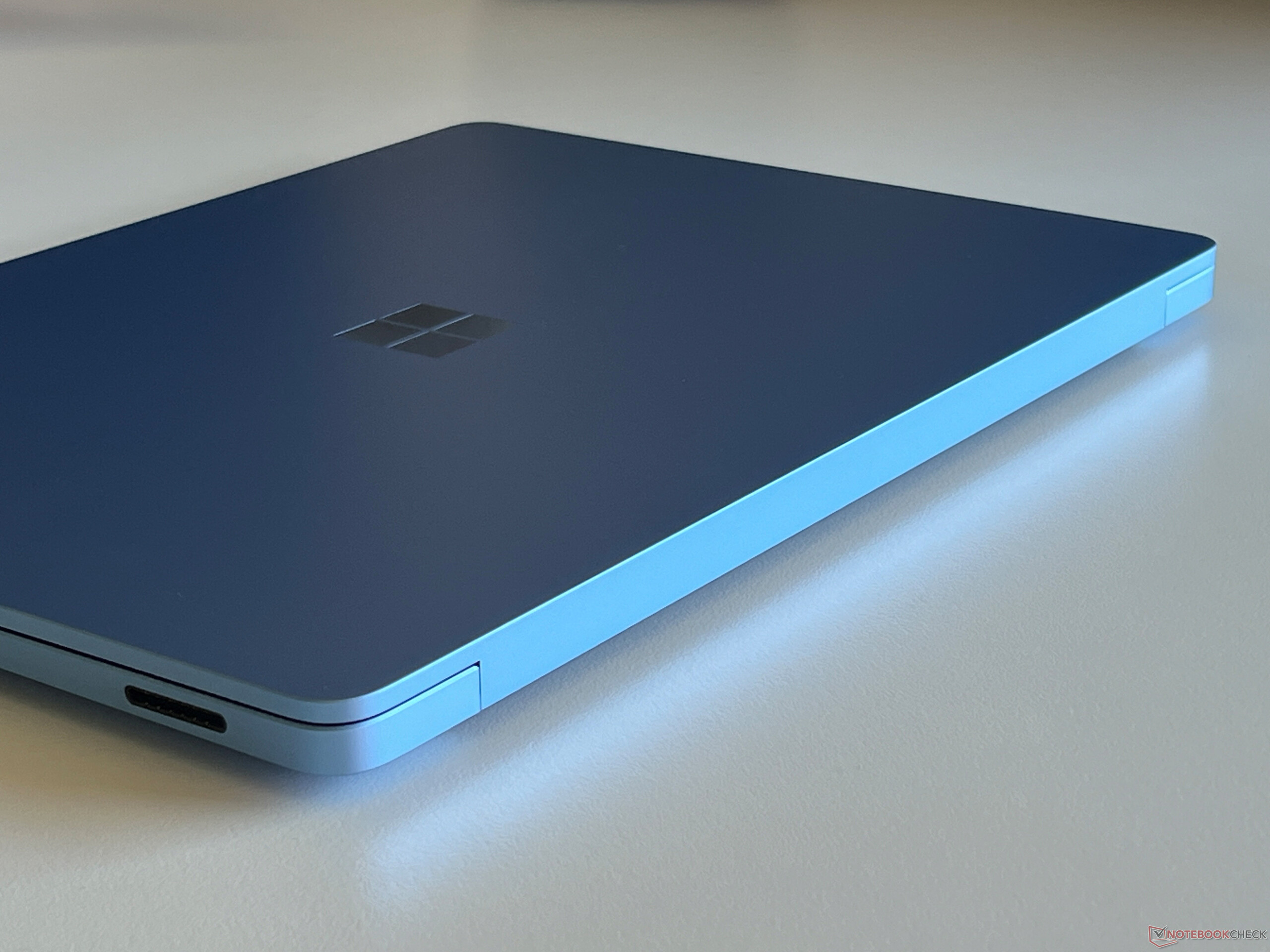 Am Design des Surface Laptop hat sich in der siebten Generation nichts verändert und von außen kann man nicht erkennen, ob es sich um ein neues Snapdragon-Modell handelt. Das erkennt man erst an der neuen Copilot-Taste. Das Metallgehäuse ist nach wie vor hervorragend verarbeitet und Microsoft bietet den Laptop in den Farben Schwarz, Platin, Graubeige oder Saphirblau an, was auch bei unserem Testgerät der Fall ist. Saphirblau ist je nach Lichteinfall sehr kräftig und uns gefällt es gut, zudem sind auch Fingerabdrücke kein wirkliches Problem.