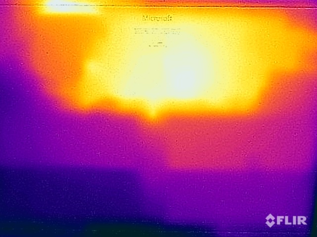 Der kompakte Surface Laptop Go 2 wird schon im Leerlauf an einigen Stellen etwas wärmer als erwartet, Einschränkungen gibt es dadurch aber nicht. Das gilt auch bei anspruchsvolleren Szenarien, in denen wir maximal knapp 47 °C auf der Unterseite ermitteln. Da sich der Hotspot jedoch in der Mitte des Gerätes befindet, kann man den Laptop auch in diesem Fall noch auf den Oberschenkeln abstellen.