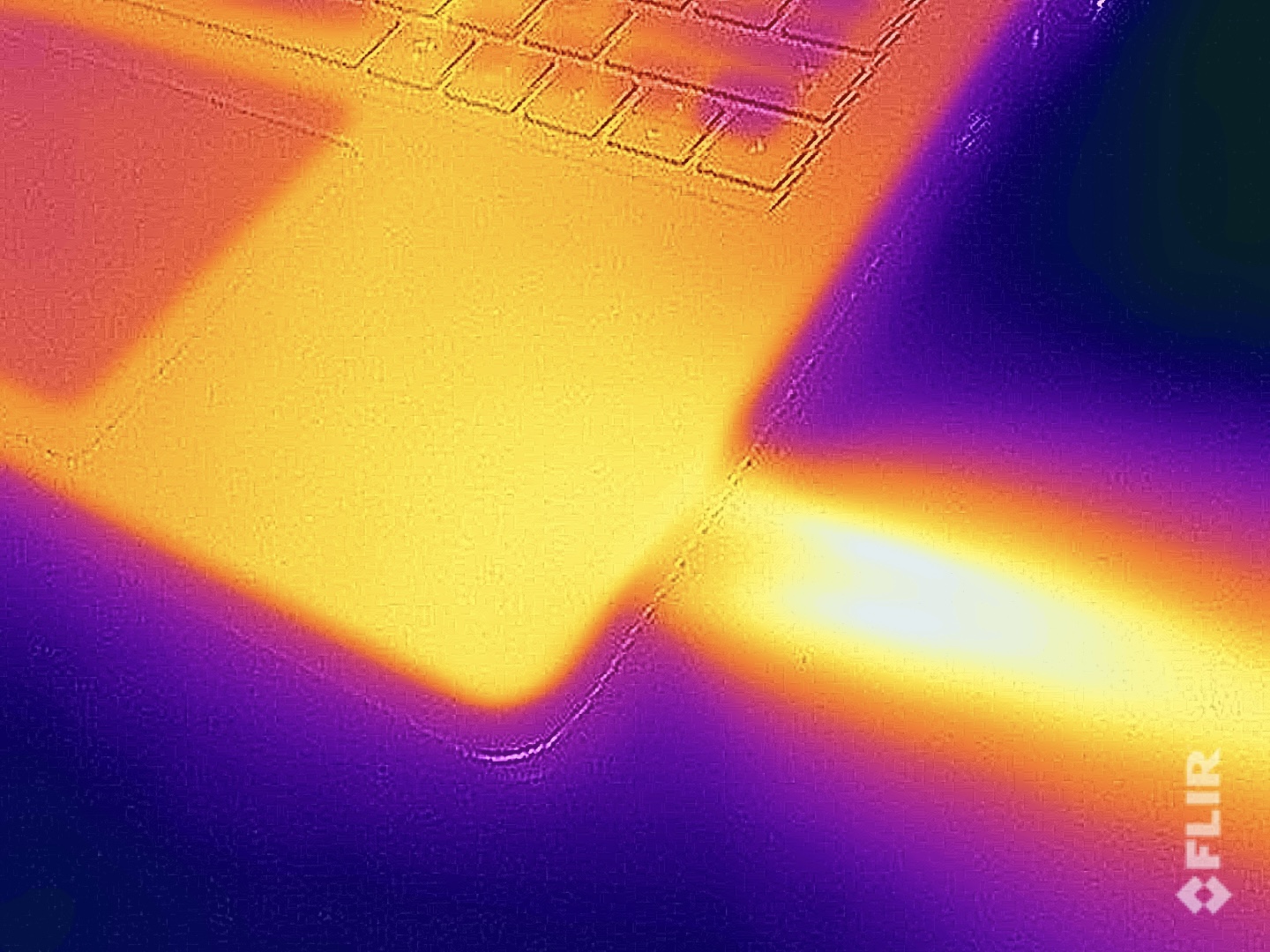(-) Die Handballen und der Touchpad-Bereich können sehr heiß werden mit maximal 40.4 °C.