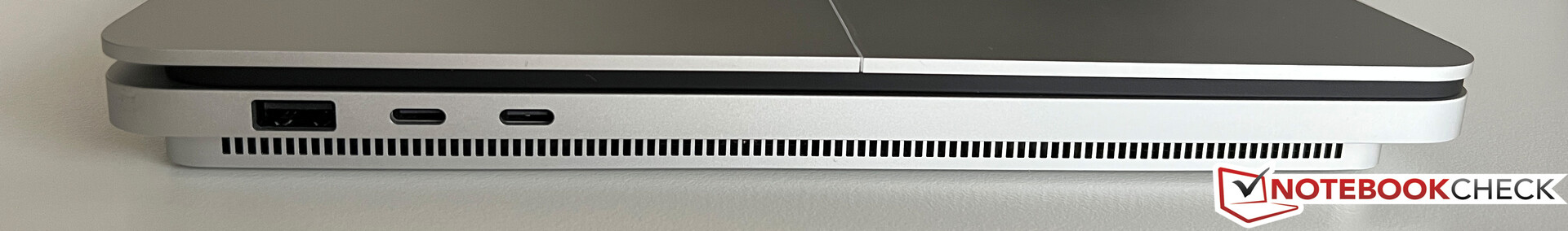 Die Anschlussausstattung war einer der Kritikpunkte bei der ersten Generation des Surface Laptop Studio und Microsoft hat sich der Kritik angenommen. Neben den bisher bekannten USB-C-Anschlüssen samt Thunderbolt 4 sowie dem Surface-Connect-Anschluss finden wir am Gerät nun noch eine reguläre USB-A-Buchse sowie einen microSD-Kartenleser. Der Surface-Connect-Anschluss ist in unseren Augen weiterhin etwas sperrig, aber zumindest bleibt Microsoft hier konsequent und bietet auch weiterhin Zubehör dafür an.