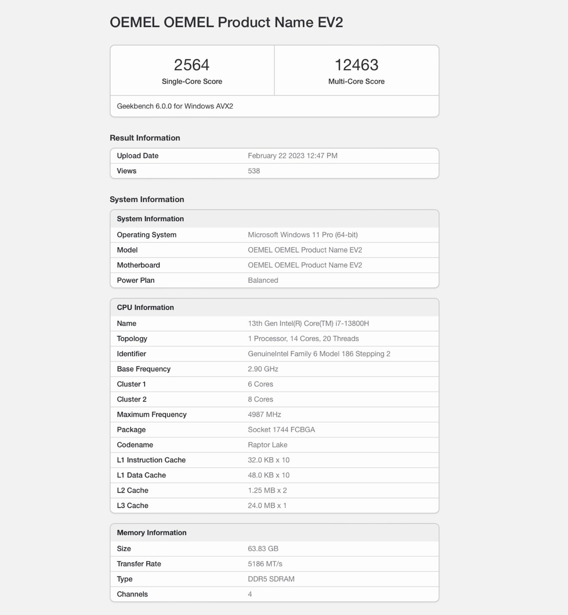Bei Geekbench sind mehrere Einträge aufgetaucht, welche einen ersten Eindruck von der Performance eines Geräts mit der Bezeichnung "OEMEL Product Name EV2" gewährt. Laut @gus33000 handelt es sich dabei um den Nachfolger des Microsoft Surface Laptop Studio (ca. 1.960 Euro auf Amazon).