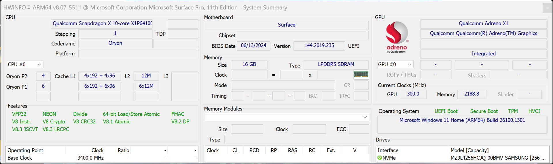 | 80.7 % | v8 | 08 / 2024 | Microsoft Surface Pro Copilot+ SD X Plus X1P-64-100, Adreno X1-85 3.8 TFLOPS | 872 g | 9.3 mm | 13.00" | 2880x1920 | |