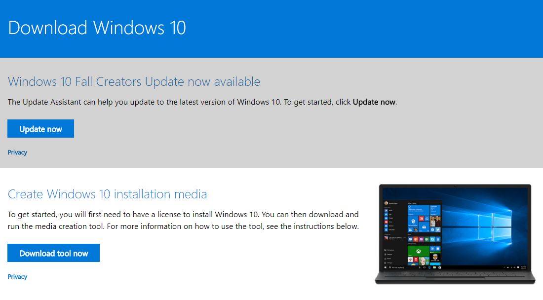 - Direkt darunter ist das Media-Creation-Tool verlinkt, das nicht nur die Installation als Update erlaubt, sondern auch die Auswahl der Sprach- und Bit-Version und die Erstellung von Bootmedien wie USB-Sticks, um beispielsweise sein System komplett frisch aufzusetzen.