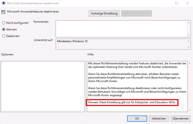 Neben Datenschützern dürften wohl demnächst auch einige Administratoren kleinerer Firmennetze ihren Unmut über das Anniversary-Update äußern. Microsoft hat nämlich die Praxis verschärft, die bereits beim November-Update letzten Jahres auf Unverständnis traf. Erstmals unterschied Microsoft damals beim Einsatz von Gruppenrichtlinien zwischen der Pro- und der Enterprise-Edition und hat einige Richtlinien nur mehr für die Enterprise- beziehungsweise Education-Editions reserviert. Mit dem Update am 2. August kommen weitere Richtlinien dazu, darunter beispielsweise das Abschalten des Lock-Screens oder das Deaktivieren aller Windows Store-Apps. Eine Liste aller bisher bekannten Richtlinien, die fortan nur mehr unter der Enterprise-Edition funktionieren werden, bietet GHacks.