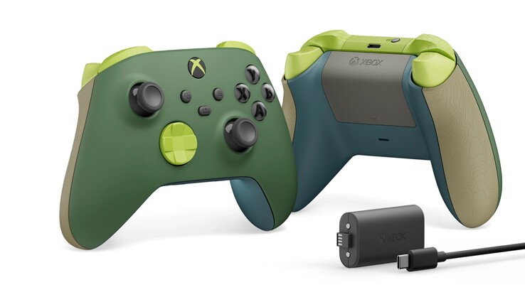 Die Farbgebung wurde laut Microsoft von der Natur inspiriert – das leuchtende Grün des D-Pads und der Trigger stammt von Flechten des pazifischen Nordwestwalds, die topografische Textur der gummierten Handgriffe ist eine Anspielung auf die vielen Berge und Täler des Planeten. Microsoft liefert ein Xbox Rechargeable Battery Pack mit, sodass Nutzer nicht auf Einwegbatterien zurückgreifen müssen. Der Akku soll eine Laufzeit von 30 Stunden ermöglichen.