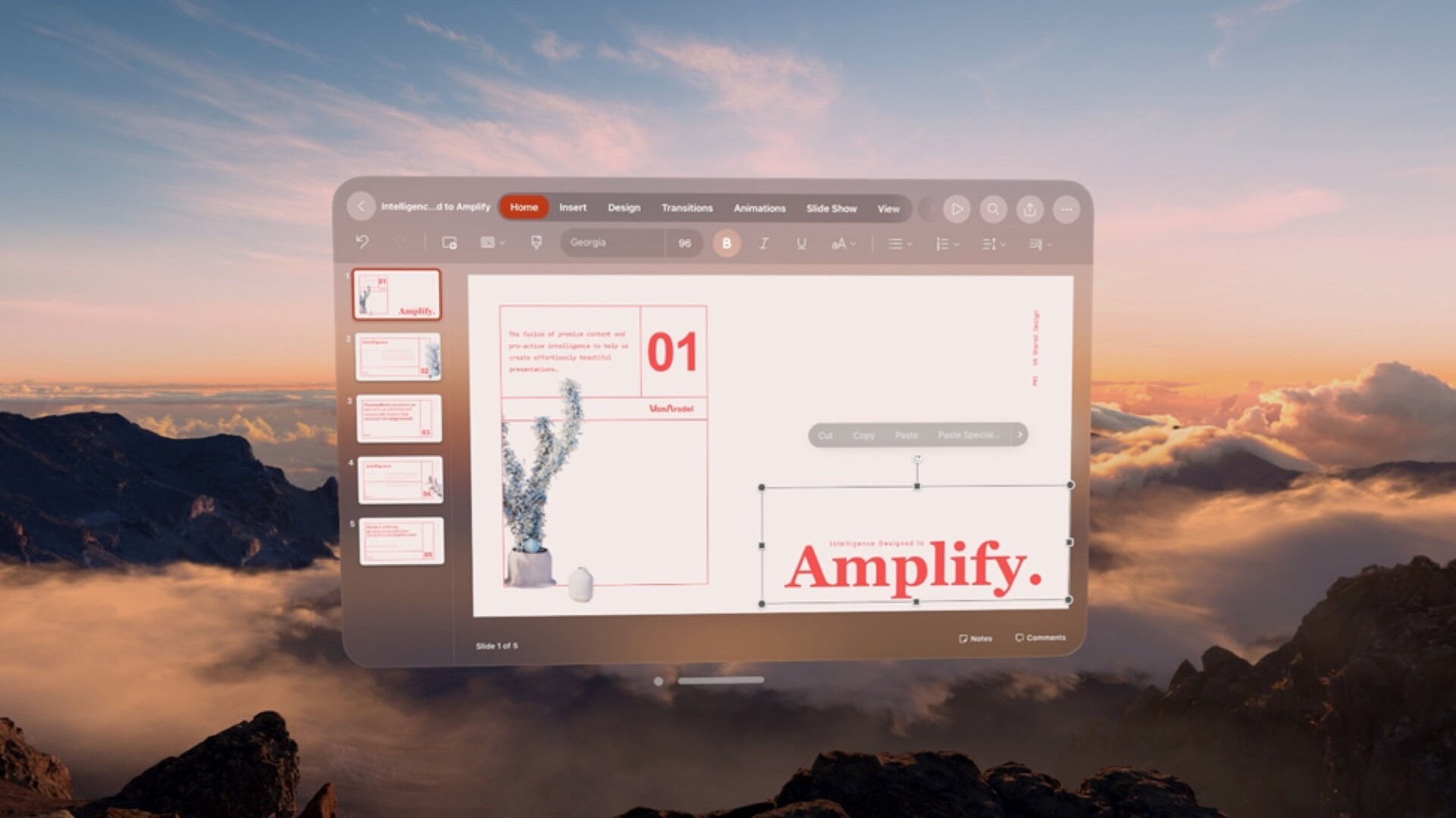 Microsoft Teams unterstützt schon zum Launch Apples Persona-Feature, sodass ein 3D-Avatar den Anwender repräsentiert, während dieser das Headset trägt. Alle Office-Apps bieten eine Copilot-Integration, sodass Microsoft Word Dokumente beispielsweise automatisch zusammenfassen oder PowerPoint per künstlicher Intelligenz eine Präsentation auf Basis einer Webseite oder eines Word-Dokuments erstellen kann.