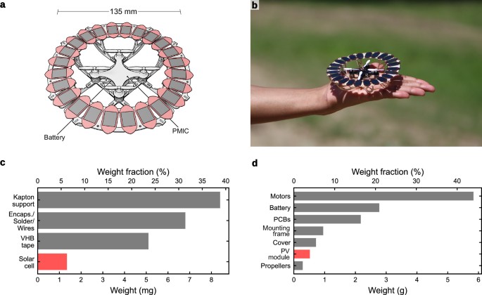 Insgesamt 24 einzelne Module, jeweils einen Quadratzentimeter groß, wurden auf dem kleinen Fluggerät montiert. Auf diese Weise reicht die Energie des Sonnenlichts aus, um die Rotoren anzutreiben und die Drohne abheben zu lassen.