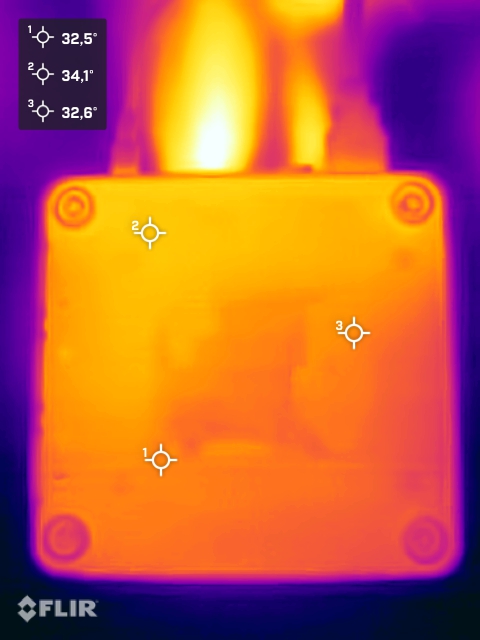 (+) Ohne Last messen wir eine durchschnittliche Temperatur von 30.6 °C auf der Oberseite. Der Klassendurchschnitt erreicht 32.5 °C.