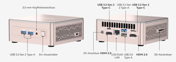 Bis zu vier Monitore oder ein Display mit 8K-Auflösung lassen sich mit dem Geekom A5 2025 Edition verbinden. Als Anschlüssen stehen je zweimal HDMI 2.0b und USB 3.2 Gen 2 Type-C, dreimal USB 3.2 Gen 2 Type-A, 2,5-Gigabit-LAN, 3,5-mm-Klinke, SD-Kartenleser und mehr zur Verfügung. Dazu kommen schnelles Wi-Fi 6 sowie Bluetooth 5.2 für drahtlose Konnektivität.