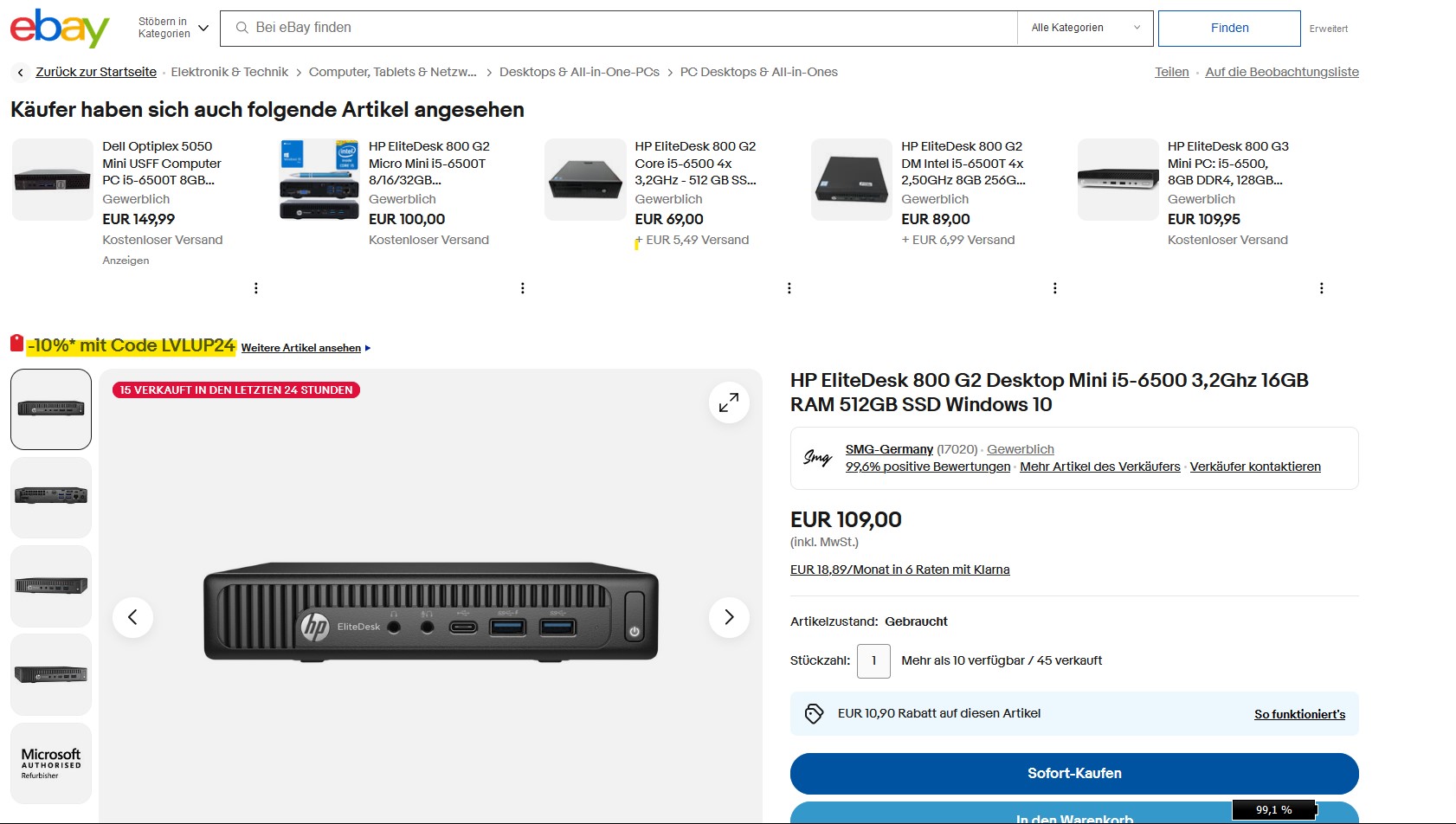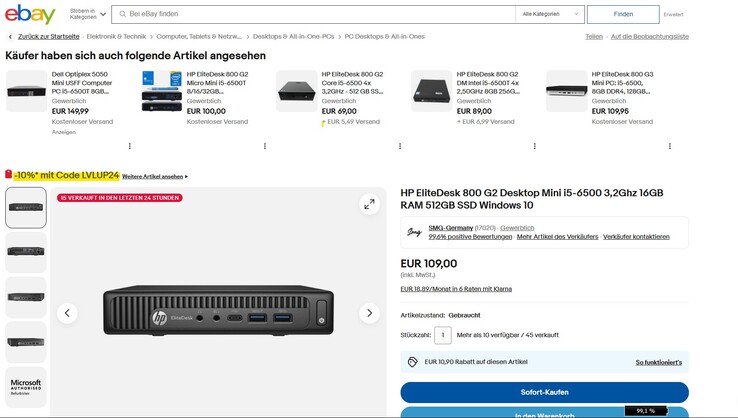 Als 1 Liter Mini-PC mit einem Gewicht von nur 700 Gramm kann der HP EliteDesk 800 G2 vielseitig eingesetzt werden, etwa als Media-PC, kleiner Office-Computer oder Micro-Server. Das beste ist, dass der generalüberholte Tiny-PC zum Deal-Preis von nur 98 Euro über eine Intel Core i5-CPU, 16 GB RAM und eine 512 GB große 2,5-Zoll-SSD verfügt. Dazu gibt man den Gutscheincode "LVLUP24" im Warenkorb an.