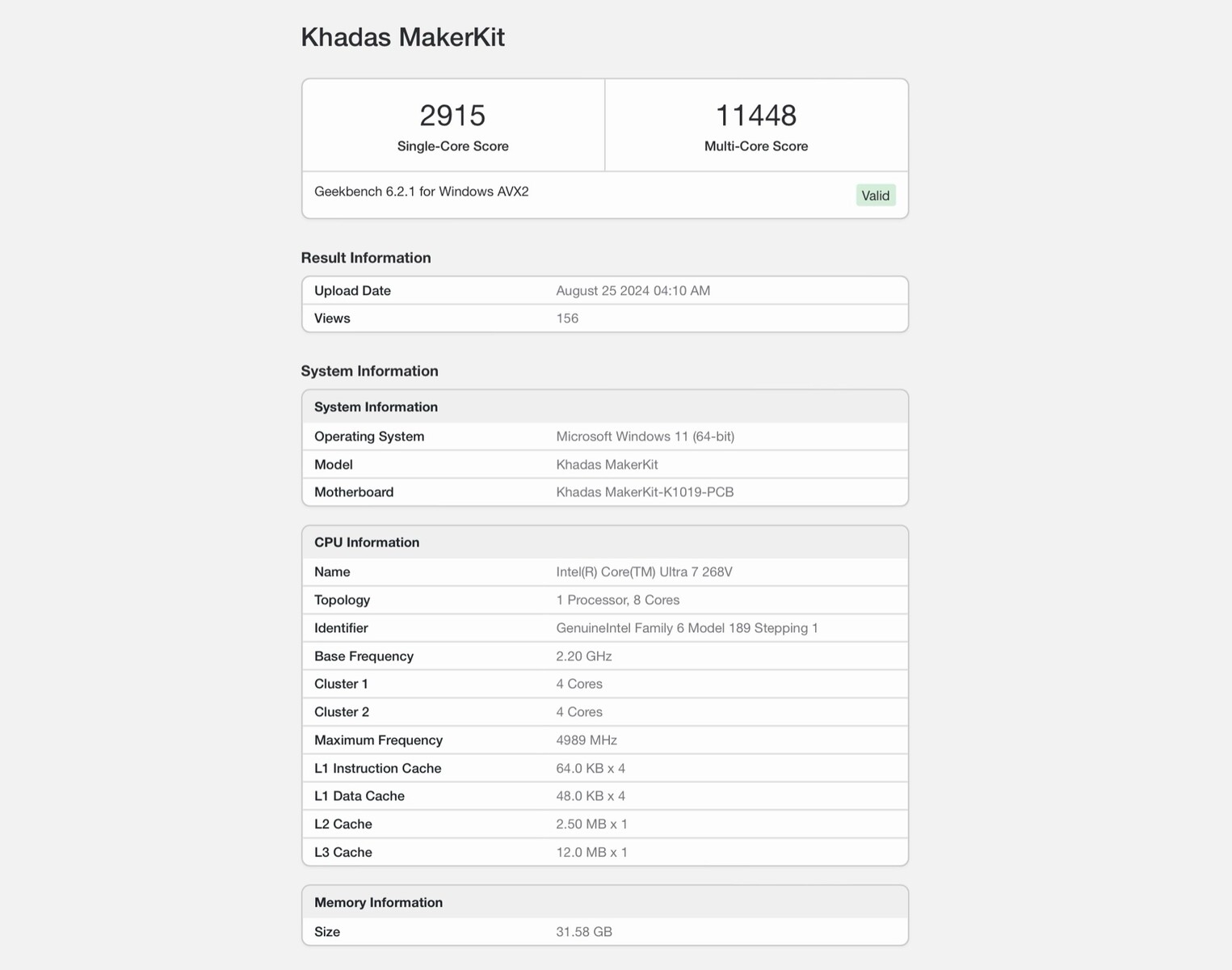 | Intel Core Ultra 7 268V | 2.915 | 11.448 |
