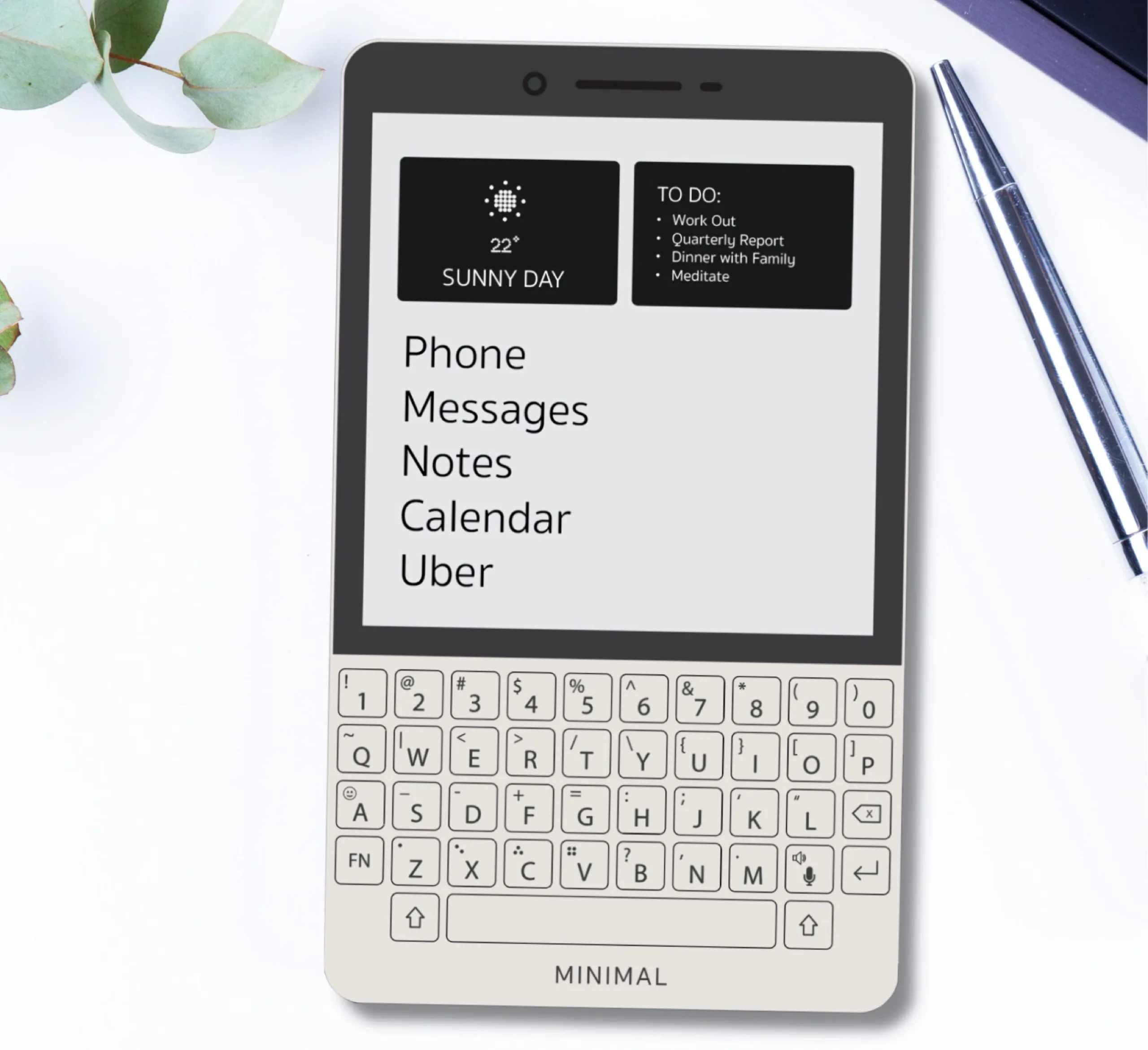 Minimal will eine Alternative zum modernen Smartphone bieten, denn ohne soziale Netzwerke und Spiele soll das Minimal Phone Nutzer nicht von der Realität ablenken oder mit Benachrichtigungen belästigen. Dazu verlässt sich das Smartphone auf MnmlOS, ein stark vereinfachtes Betriebssystem, das neben den nötigsten Handy-Apps auch einfache Widgets und Drittanbieter-Apps wie Uber unterstützt.