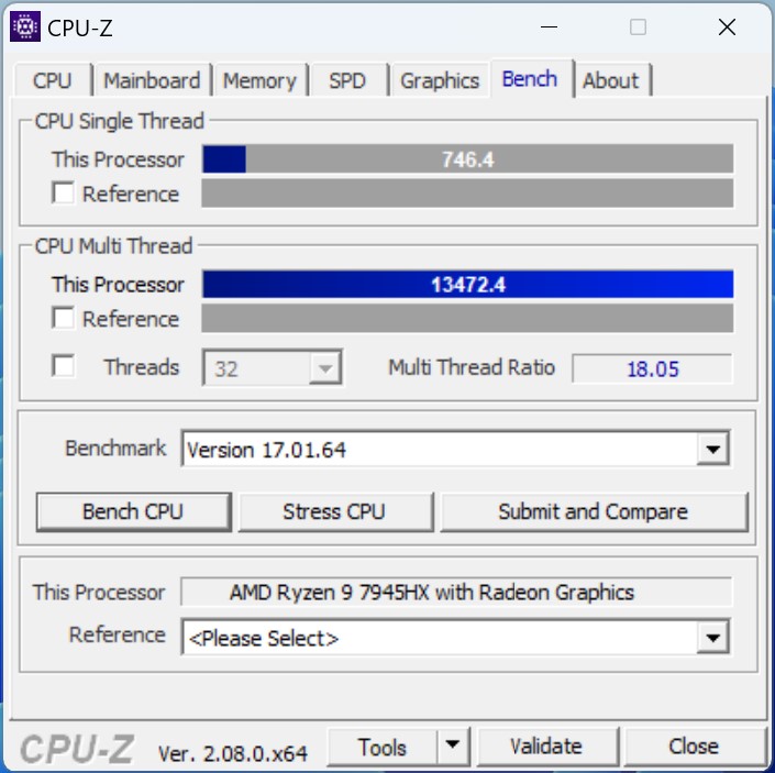 | 84.1 % | v8 | 07 / 2024 | Minisforum G7 PT R9 7945HX, Radeon RX 7600M XT | 2.8 kg | 285 mm | |