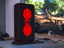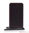 Zum Lieferumfang gehört zum einen das Gerät selbst sowie das 300-Watt-Netzteil und der magnetische Standfuß, mit dem das Gerät vertikal aufgestellt werden kann.