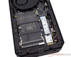 Bei der ab Werk eingebauten SSD handelt es sich um ein Modell aus dem Haus Kingston. Baugleiche Modelle sind uns bereits des Öfteren untergekommen. Grundsätzlich gibt es an der Leistung nicht viel zu kritisieren, denn sie passt sowohl bei kurzer Belastung als auch beim Stresstest. Die große Kühlplatte mit kleinem Lüfter sorgt hier für stabile Datenraten ohne die Gefahr von Leistungsverlusten aufgrund hoher Temperaturen. Genutzt wird die M.2-Schnittstelle, welche in unserem Fall mit PCIe-4.0-x4-Geschwindigkeit arbeitet. Minisforum bewirbt den Mini-PC speziell mit PCIe-5.0-Support hinsichtlich des Massenspeichers. Dass der Hersteller hier darauf verzichtet und nicht die optimale Leistung anbietet, ist schade. Immerhin kann man selbst mit einem entsprechenden Modell noch mehr Leistung herausholen. Insgesamt lassen sich zwei M.2-2280-SSDs in das Gerät einbauen. Das ist gut, denn im Auslieferungszustand war unser Testsample nur mit einer 1-TB-SSD bestückt, womit man hinsichtlich des Einsatzzweckes als Gaming-PC schnell an die Grenzen stößt. Eine 2-TB-SSD wäre unserer Ansicht nach die deutlich bessere Alternative.
