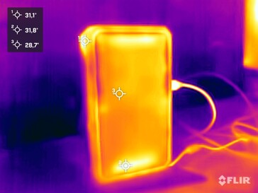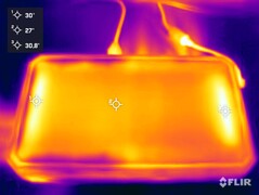 (+) Auf der Unterseite messen wir eine maximalen Wert von 36.9 °C (im Vergleich zum Durchschnitt von 36.3 °C).