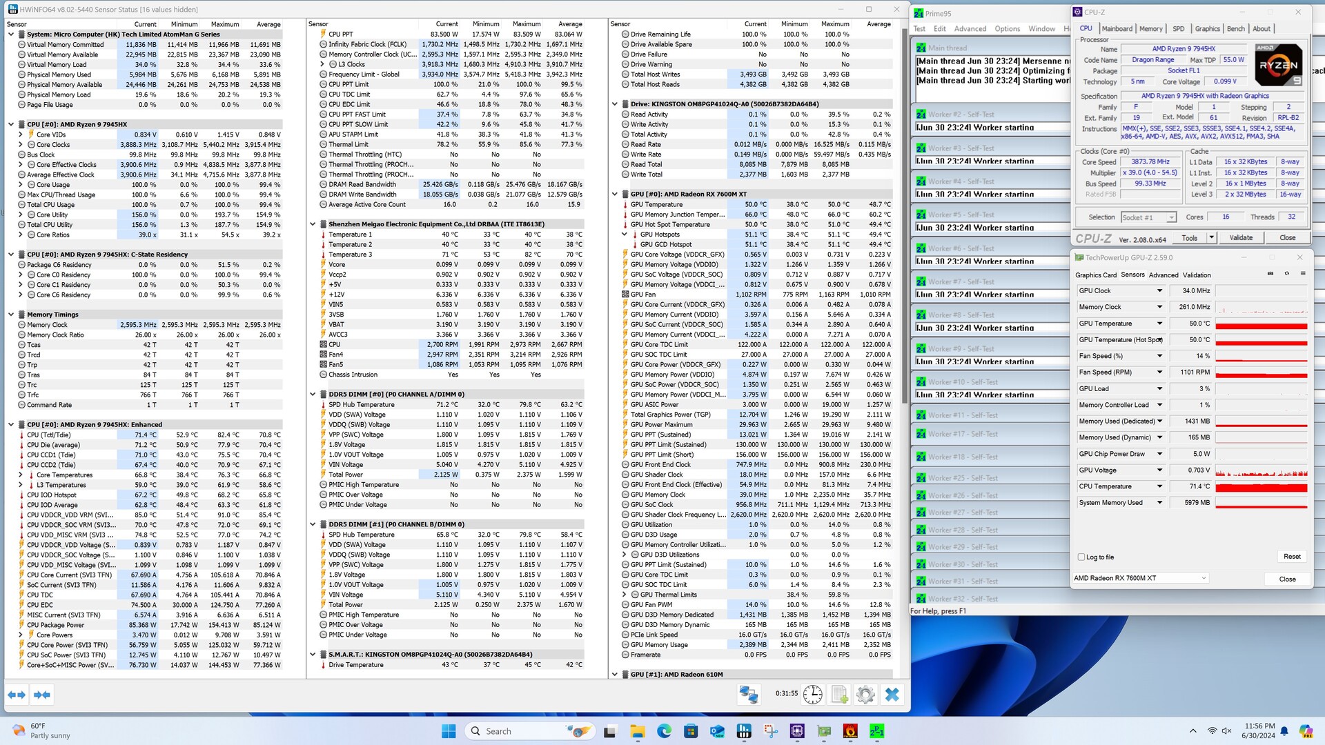 Der AMD Ryzen 9 7945HX bietet im Minisforum AtomMan G7 PT eine beeindruckende Leistung mit 16 Kernen und 32 Threads. Damit gehört der mobile Prozessor zu den schnellsten Modellen, die AMD aktuell im Portfolio hat. Das i-Tüpfelchen wäre der AMD Ryzen 9 7945HX3D gewesen, welcher mit seinem 3D-V-Chache für das reine Gaming noch mal etwas besser geeignet wäre. Damit gibt es hier jedoch nur Kritik auf ganz hohem Niveau, denn bei der reinen CPU-Power liegen beide 16-Kerner nahezu gleichauf. Erstaunlich gut ist die Leistung im Vergleich zu herkömmlichen Desktop-Prozessoren. Ein AMD Ryzen 9 7950X kann sich im gemittelten Performance-Rating nur um acht Prozentpunkte absetzen, wenngleich der Intel Core i9-14900K lediglich ein Plus von mageren zehn Prozent erreicht. Im Verhältnis zur Energieaufnahme zeigt sich an dieser Stelle einmal sehr deutlich, wie effizient mobile Prozessoren sein können.