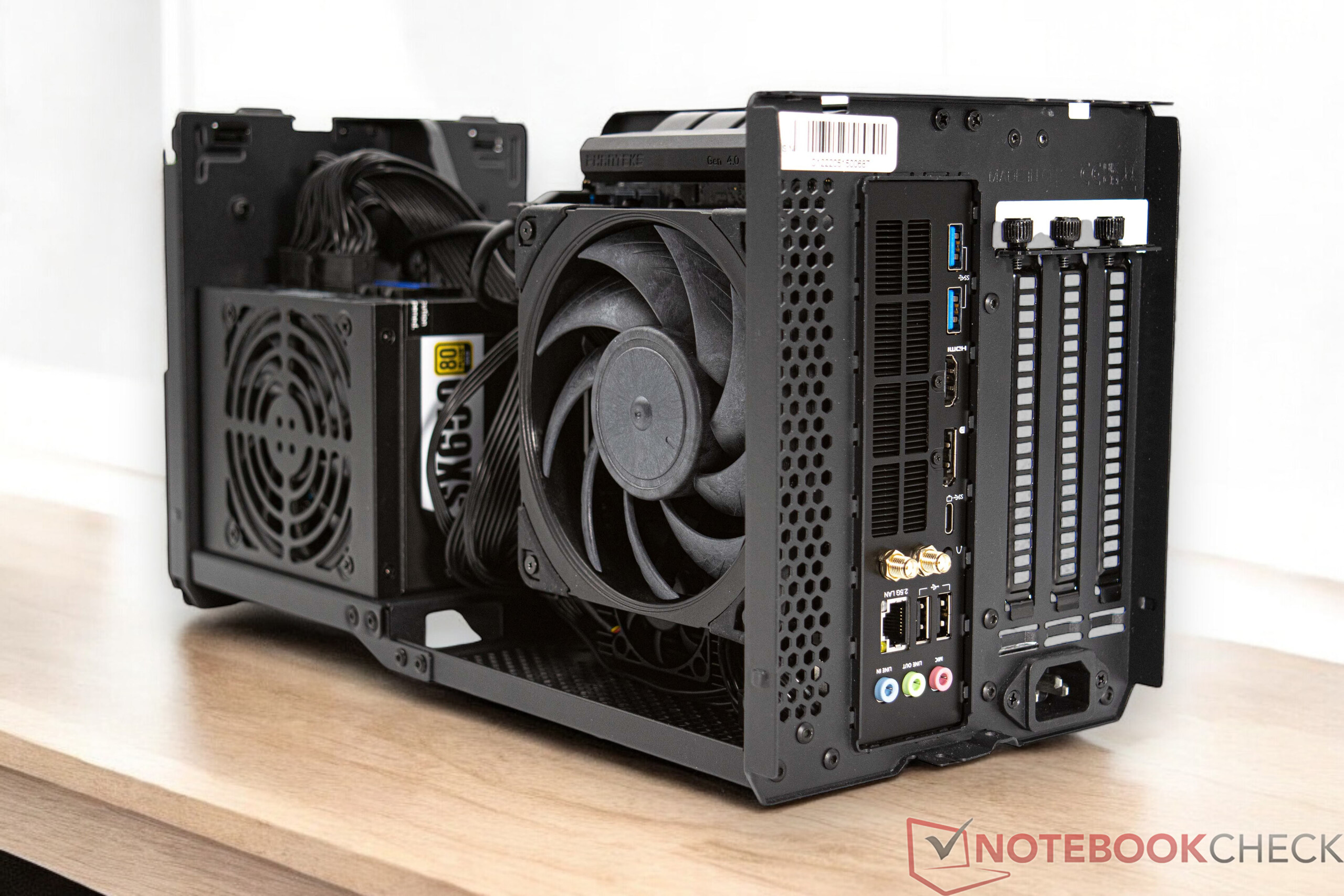 Für den Leistungsvergleich mit dedizierter Grafikkarte haben wir das Minisforum BD790i zusammen mit der Palit GeForce RTX 4090 GameRock OC im offenen Aufbau getestet. Aufgrund der Größe der Grafikkarte war ein Einbau in das Phanteks Enthoo Evolv Shift XT nicht möglich. In das Phanteks Enthoo Evolv Shift XT passen Grafikkarten, welche eine Länge von 32,4 Zentimeter nicht überschreiten.