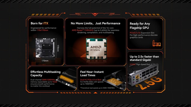 Mit dem BD895i SE präsentiert Minisforum den Nachfolger des BD790i SE, der vor allem ein Upgrade vom AMD Ryzen 9 7940HX auf den Ryzen 9 8945HX erhält – ein nur minimales Performance-Upgrade, denn beide Chips besitzen 16 Zen 4 Performance-Kerne, der neuere Prozessor erreicht aber etwas höhere Boost-Taktraten von 5,4 GHz.