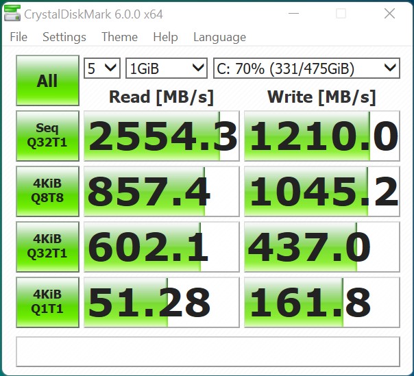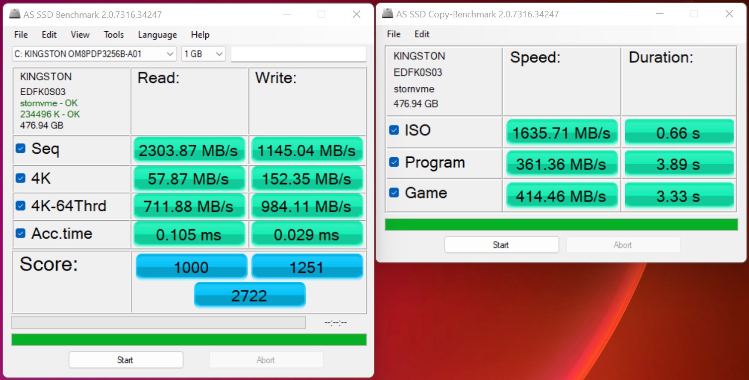 Der verbaute Massenspeicher in unserem Testsample stammt von Kingston und bietet eine solide Leistung. Insgesamt lassen sich drei Massenspeicher im Gehäuse unterbringen. Dafür stehen zwei M.2-Schnittstellen sowie ein Platz für einen 2,5-Zoll-Datenträger zur Verfügung.