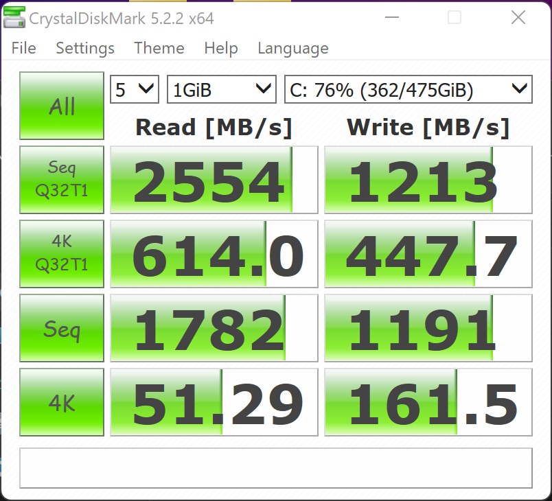 Über alle CPU-Tests kann der AMD Ryzen 7 5700G eine solide Leistung abliefern, welche mit einem AMD Ryzen 9 5900HX auf Augenhöhe ist. Intels mobiler 8-Kerner, der Intel Core i7-11800H kann leicht übertroffen werden. Dieser kam im Test des Zotac Magnus EN173070C zum Einsatz.