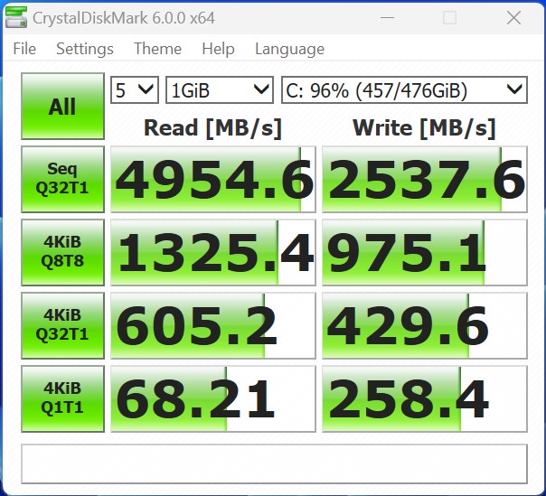 Das SSD-Modell von Kingston nutzt die PCIe-Schnittstelle bestens aus und das sehen wir auch in den Benchmarks. Hier recht es für den Minisforum EM680 für einen guten zweiten Platz hinter dem Minisforum NAB6. Der 4K-Lesewert verhindert hier ein besseres Ergebnis, wenngleich die 71,5 MB/s trotzdem ein tolles Resultat sind.