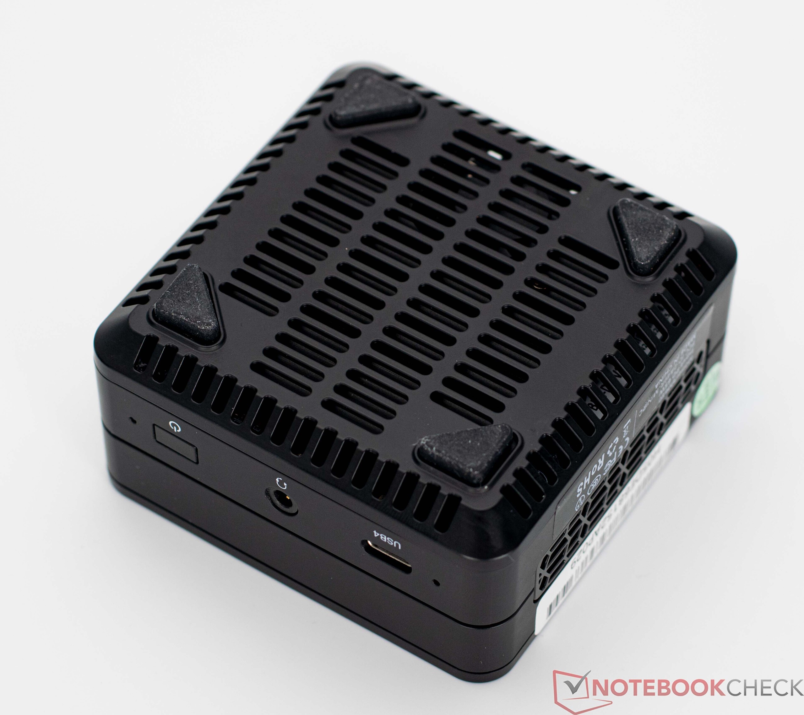 Das Öffnen des Minisforum EM680 ist grundsätzlich möglich, allerdings lässt sich nur der Massenspeicher tauschen. Die Unterseite ist leicht entfernbar, nachdem die vier Schrauben herausgedreht sind. Diese befinden sich allerdings genau unter den Gummifüßen und sind nicht gleich ersichtlich. Von einer Demontage des Kühlkörpers rät der Hersteller explizit ab, um Beschädigungen zu vermeiden. Als Grund vermuten wir den Einsatz von Flüssigmetall zur optimalen Wärmeabfuhr.
