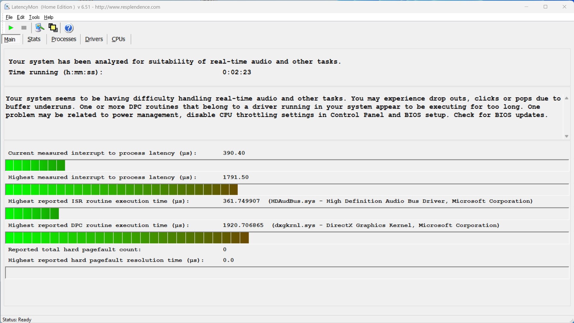 | DPC Latencies / LatencyMon - interrupt to process latency (max), Web, Youtube, Prime95 | |