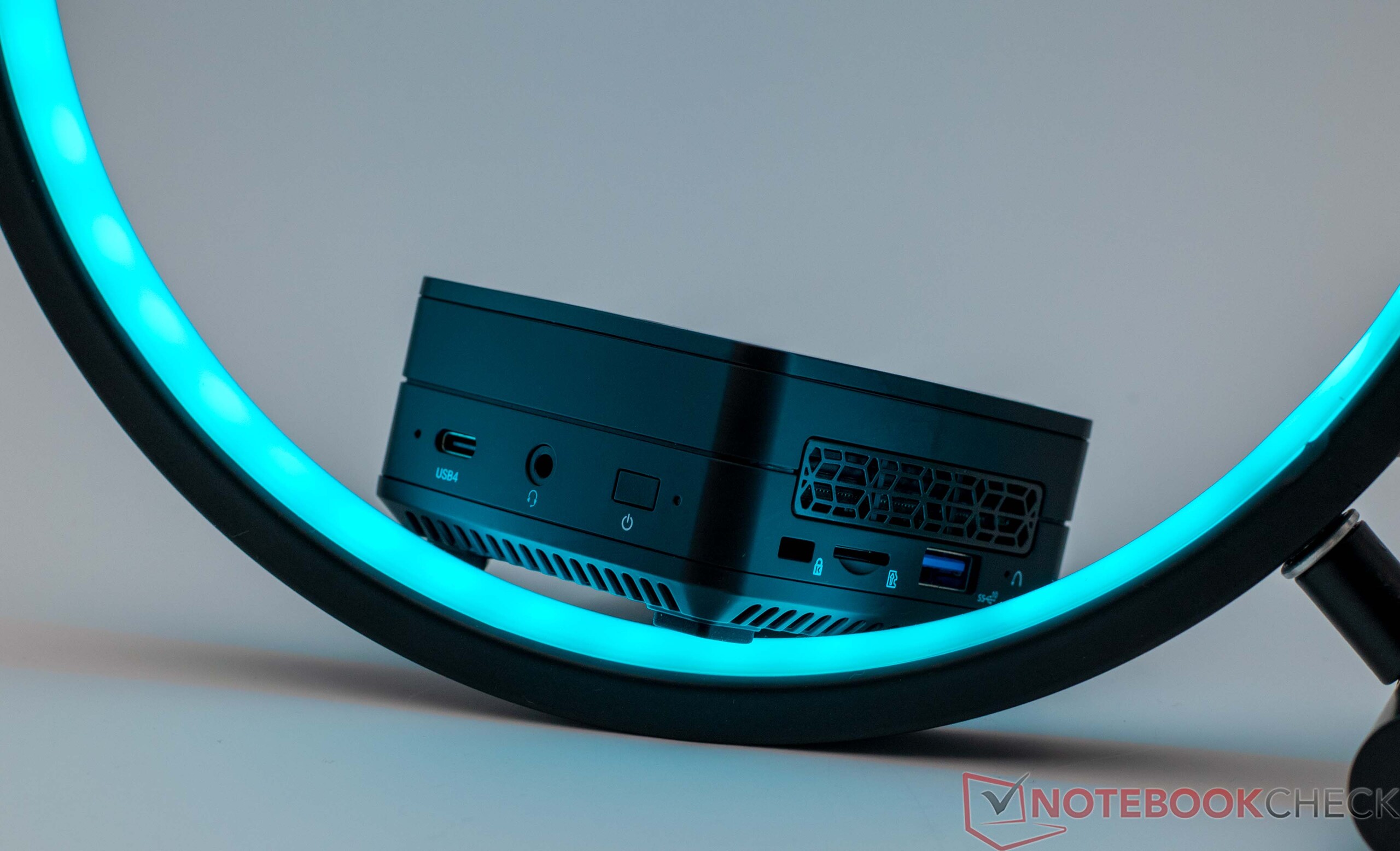 Wer nun denkt, dass der kleine PC wenig Anschlussmöglichkeiten zu bieten hat, der wird eines Besseren belehrt. Insgesamt gibt es fünf USB-Anschlüsse, von denen zwei sogar USB-4-Geschwindigkeit bieten. Damit ist das Gerät schon optimal ausgestattet und stellt so manchen Konkurrenten in den Schatten. Weiterhin gibt es noch einen HDMI-Ausgang sowie einen Klinkenanschluss für ein Headset. Sogar ein SD-Kartenleser gibt es, wenngleich dieser nur microSD-Karten aufnehmen kann. Insgesamt kann der Minisforum EM680 bis zu drei Bildschirme befeuern, wenn neben dem HDMI-Anschluss auch die beiden Thunderbolt-Schnittstellen verwendet werden. Hierfür muss die Peripherie jedoch Power-Delivery unterstützen, denn über den USB-C-Anschluss wird der EM680 auch gleichzeitig mit Energie versorgt.