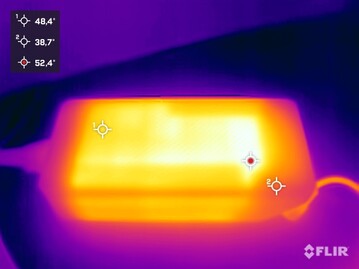 (-) Auf der Unterseite messen wir eine maximalen Wert von 52.4 °C (im Vergleich zum Durchschnitt von 36.3 °C).
