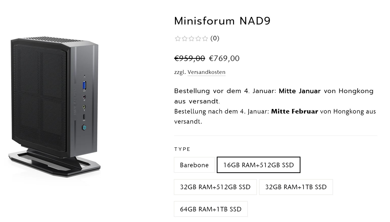 Den Minisforum Neptune Series NAD9 kann man direkt im Shop bei Minisforum bekommen. Aktuell gibt es noch attraktive Rabatte für den Vorverkauf; die Steuern sind schon mit inbegriffen. So muss man nur 769 Euro für unser Testgerät auf den Tisch legen. Ohne Rabatt liegt der Preis bei 959 Euro. Das preiswertere Barebone-Modell startet derzeit bei 639 Euro.