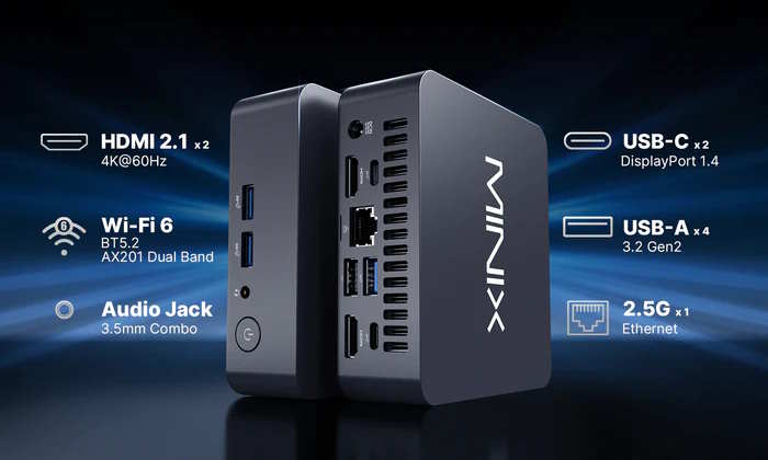 Minix bringt einen neuen Mini-PC auf den Markt. Der NUC335 kommt dabei mit einem Prozessor von Intel, konkret wird der Intel Core 3 N355 genutzt - dabei handelt es sich nicht um einen extrem leistungsstarken Rechenchip, der NUC335 dürfte sich so auch eher für eher grundlegende, typische Aufgaben wie etwa die Textbearbeitung eignen - oder auch die Medienwiedergabe. Der 117 x 111 x 36 Millimeter große Mini-PC kann dabei auch platzsparend an die Rückseite eines PCs montiert werden, im Lieferumfang ist eine VESA-Halterung bereits enthalten - die Montage ist damit an allen Monitoren mit einer VESA-Aufnahme möglich, was tendenziell bei sehr, sehr vielen Monitoren der Fall ist. Verbaut ist ein 16 Gigabyte großer Arbeitsspeicher und eine 512 Gigabyte große M.2 2280-SSD, eine zweite SSD im M.2 2242-Format ist nutzbar.