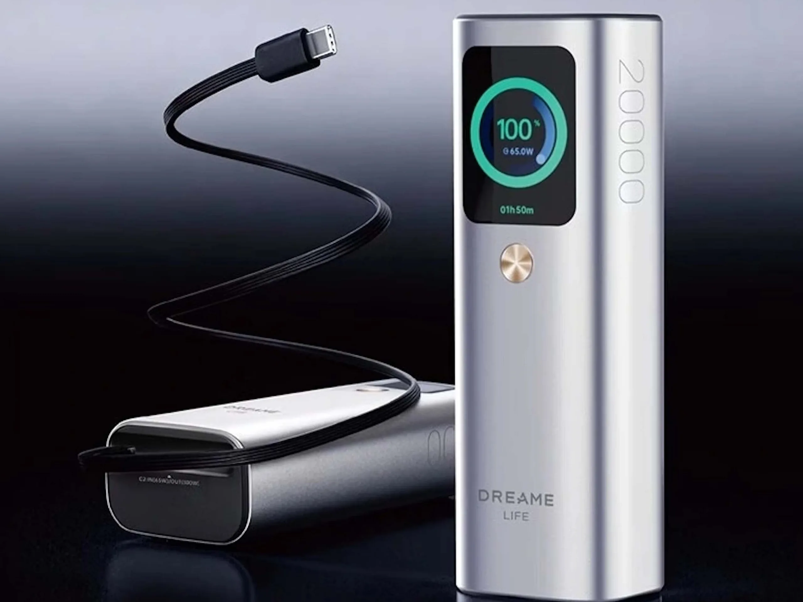 Nutzer können den Ladestand und etwa die aktuell anliegende Ladeleistung über ein kleines Display einfach und dann entsprechend als (genauen) Zahlenwert betrachten. Die 156 × 52,8 × 40,8 Millimeter große Powerbank bringt eine Kapazität von 20.000 mAh mit, welche auch nur relativ langsam sinken soll. Konkret sollen sich nach 500 Ladezyklen noch über 80 Prozent der ursprünglichen Kapazität abrufen lassen. Mit 505 Gramm ist die Powerbank dabei natürlich nicht ganz leicht. Durch das Eigengewicht der Akkuzellen lässt sich ein höheres Gewicht schlicht nicht vermeiden. Als Material wird auch Aluminium eingesetzt. Der Preis liegt bei umgerechnet rund 50 Euro, wobei bislang nur Informationen für den chinesischen Markt vorliegen.
