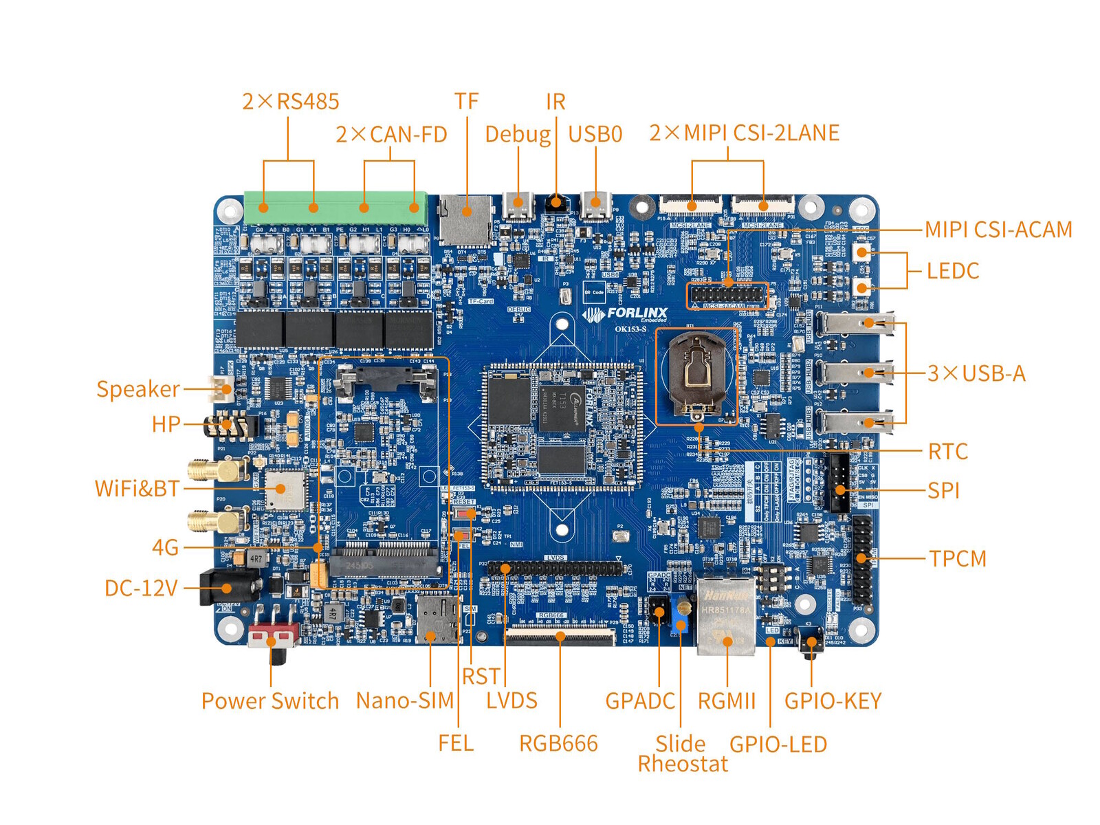 Der OK153-S ist ein neuer Einplatinenrechner, welcher auf dem FET153-S SOM basiert - der FET153-S wird dabei quasi auf ein Carrier-Board gelegt, mit diesem Board lässt sich der FET153-S wie beispielsweise ein Raspberry Pi nutzen, da die Anschlüsse in ihrer mehr oder weniger gewöhnlichen Form ausgeführt werden. Als SoC kommt der Allwinner T153 zum Einsatz. Dabei handelt es sich um einen SoC, der Rechenchip mit zwei unterschiedlichen Architekturen mitbringt, so werden vier ARM Cortex-A7-Kerne mit einem RISC-V E907-Chip kombiniert. Forlinx zufolge soll sich damit der OK153-S eine gute Kombination aus leistungsstarker Datenverarbeitung und Eignung für Anwendungen mit hoher Anforderungen an die Echtzeitleistung eignen.