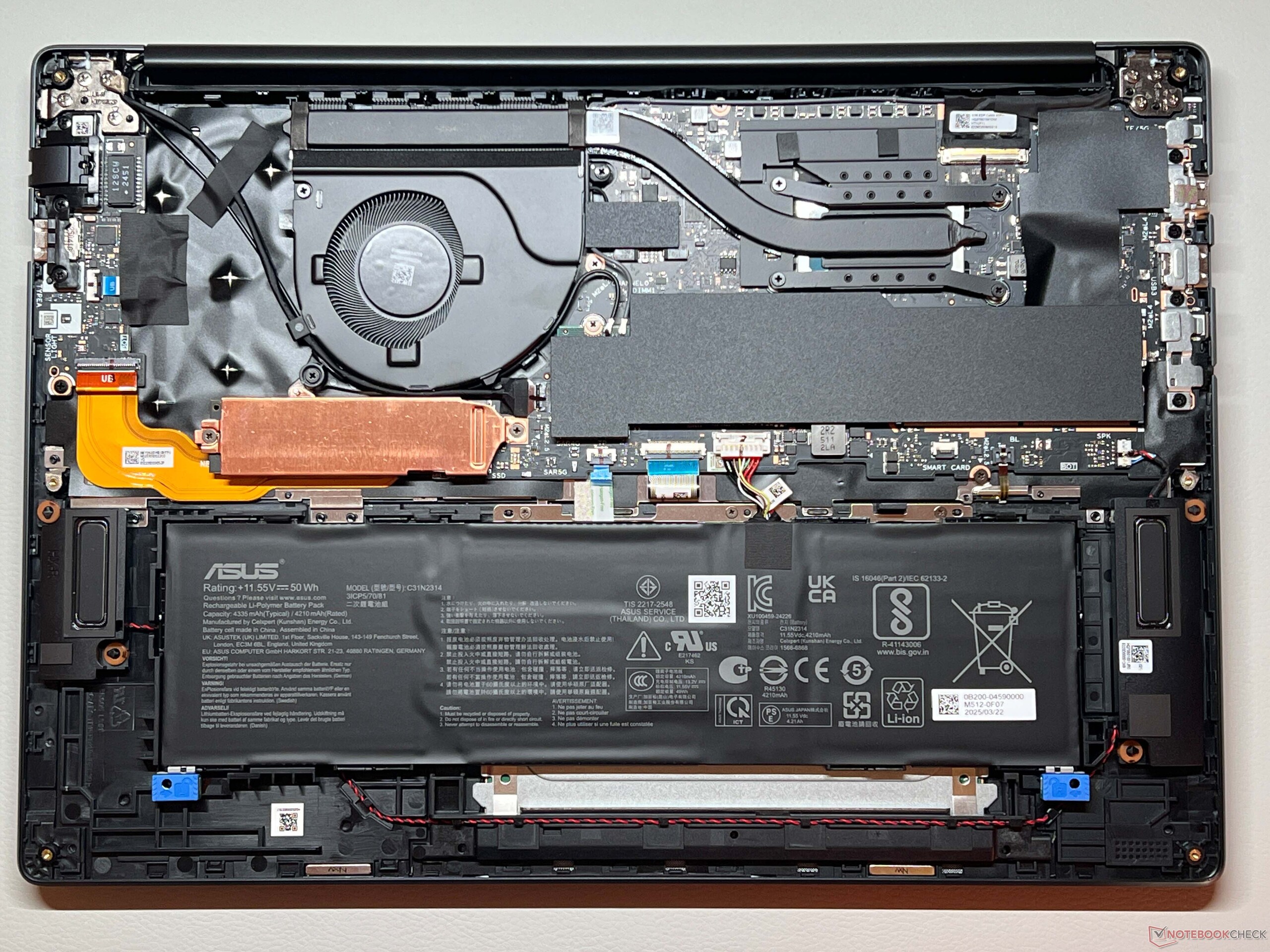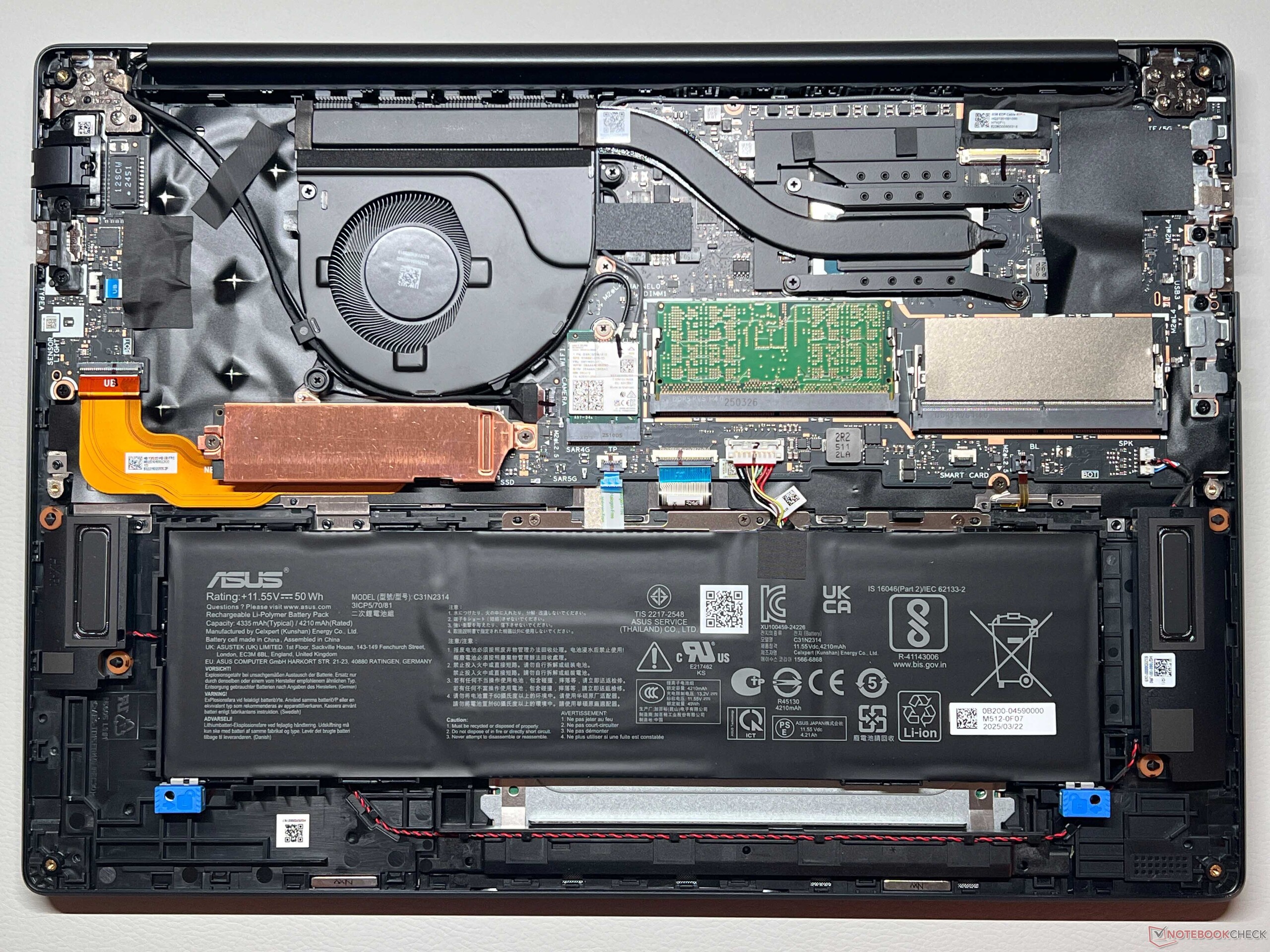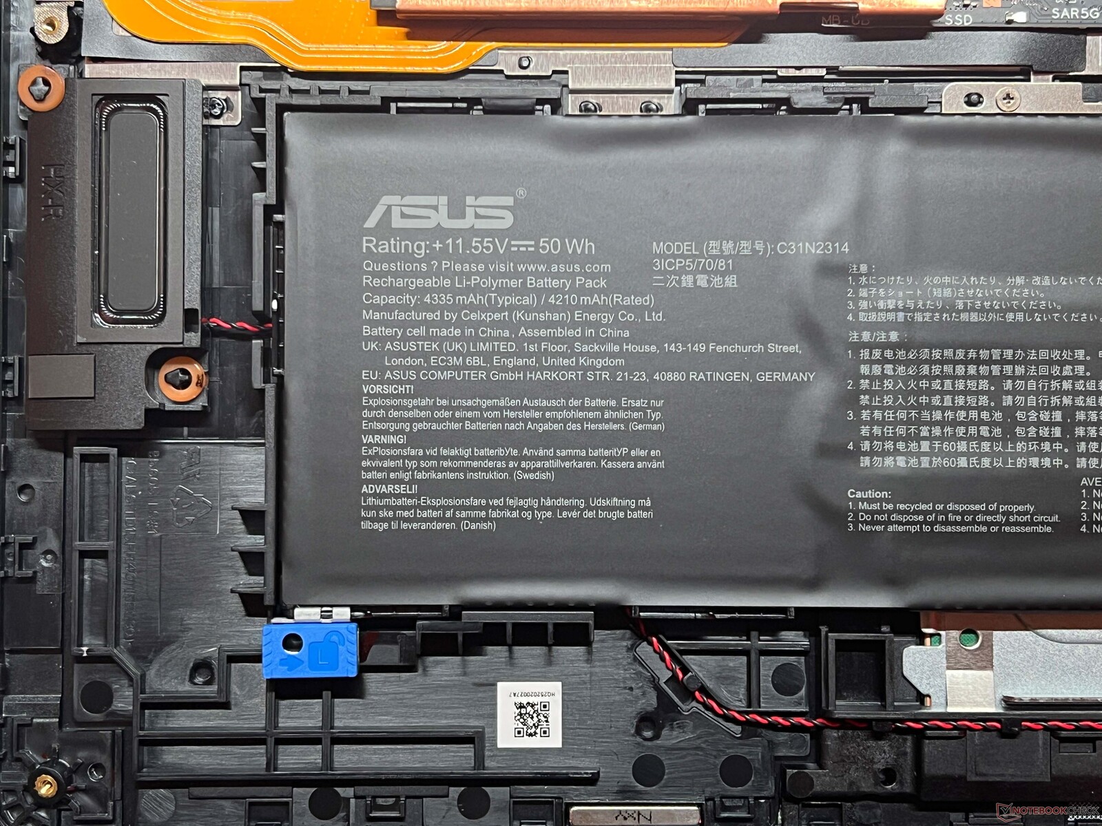 Asus verbaut einen 50-Wh-Akku und zusammen mit den relativ hohen Verbrauchswerten sind die Akkulaufzeiten im Konkurrenzvergleich nicht besonders gut. Bei einer Helligkeit von 150 cd/m² (entspricht beim Testgerät 73 % der maximalen Helligkeit) und 60 Hz läuft unser WLAN-Test für knapp 9 Stunden und bei voller Helligkeit noch rund 6,5 Stunden.