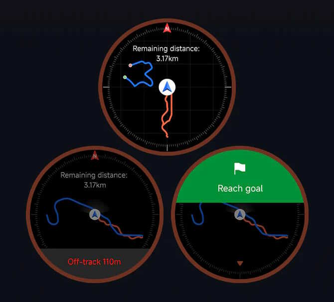 Ausgestattet ist die Uhr mit einem GNSS-Modul, wobei dieses sowohl im L1- als auch L5-Band agieren kann - das verspricht tendenziell eine höhere Qualität der Ortung. Die Uhr unterstützt nicht die Anzeige von lokal vorgehaltenem Kartenmaterial, allerdings lassen sich GPS-Tracks in verschiedenen Formaten auf die Uhr bringen. Bei Abweichungen können sich Nutzer informieren lassen, allerdings kann die Uhr dann nicht etwa einen alternativen Weg suchen.