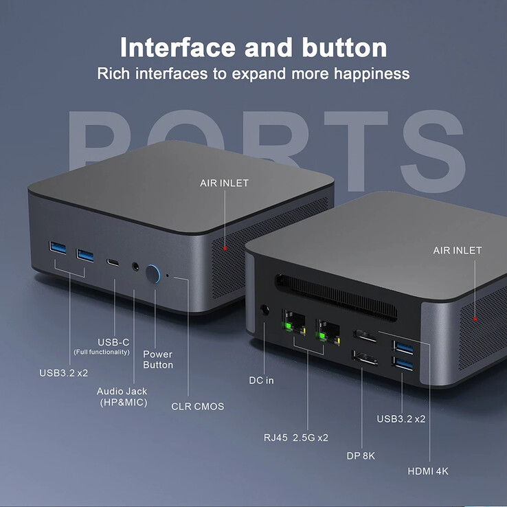 Bis zu 8K-Auflösung bei 60 Hz kann die integrierte Intel Iris Xe Graphics ausgeben. Alternativ kann sie bis zu drei Bildschirme mit maximal 4K versorgen. Angeschlossen werden diese über DisplayPort, USB-C und HDMI. Zwei HDMI-Kabel mit 20 und 80 cm Länge liegen ebenso im Lieferumfang bei wie eine Wandhalterung samt Adapter. Dazu sind weitere USB-A-Anschlüsse, ein Audioausgang sowie zwei LAN-Ports mit bis zu 2,5 Gigabit verbaut.