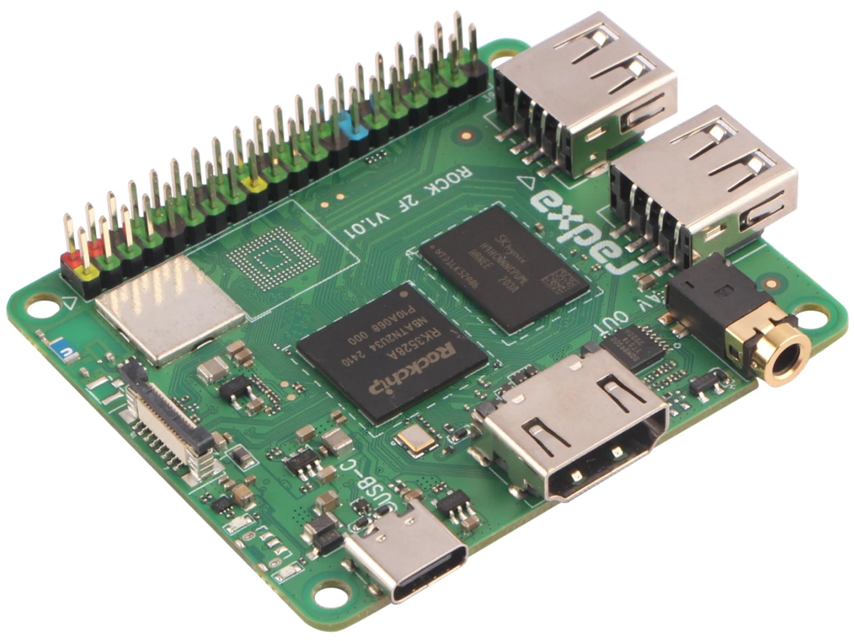 Der Radxa Rock 2F ist im Grunde auch als Alternative zum Raspberry Pi nutzbar, kommt dabei aber mit einer geringeren Rechenkapazität - wie relevant dies ist, hängt stark von den eigenen Anwendungen an. Im Prinzip ist die Ausstattung dem Raspberry Pi 5 allerdings relativ ähnlich, so ist auch der Radxa Rock 2F mit einem PCIe-Anschluss ausgestattet. Verbaut ist ein FPC-Verbinder, wobei nur PCIe 2.0 unterstützt wird. Der verbaute HDMI-Anschluss unterstützt die Bildausgabe von 4K-Material mit 60 Bildern und damit die flüssige Darstellung von hochauflösenden Bildinhalten. Ein AV-Ausgang steht bereit.