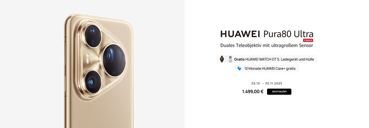 Mit einem exklusiven Gutscheincode lässt sich zudem kräftig sparen. Wer bei seiner Bestellung den bis ebenfalls Ende November 2025 gültigen Rabattcode A10HWPURA80 erfolgreich einlöst, spart satte 10 Prozent. So mindert sich der Kaufpreis für das HUAWEI Pura 80 Ultra um ca. 150 Euro auf 1.349,10 Euro und für das Pura 80 Pro um rund 110 Euro auf nur noch 989,10 Euro. Diese Sparmöglichkeiten sollte sich niemand entgehen lassen, der mobile Fotografie in ungeahnter Qualität erleben möchte!