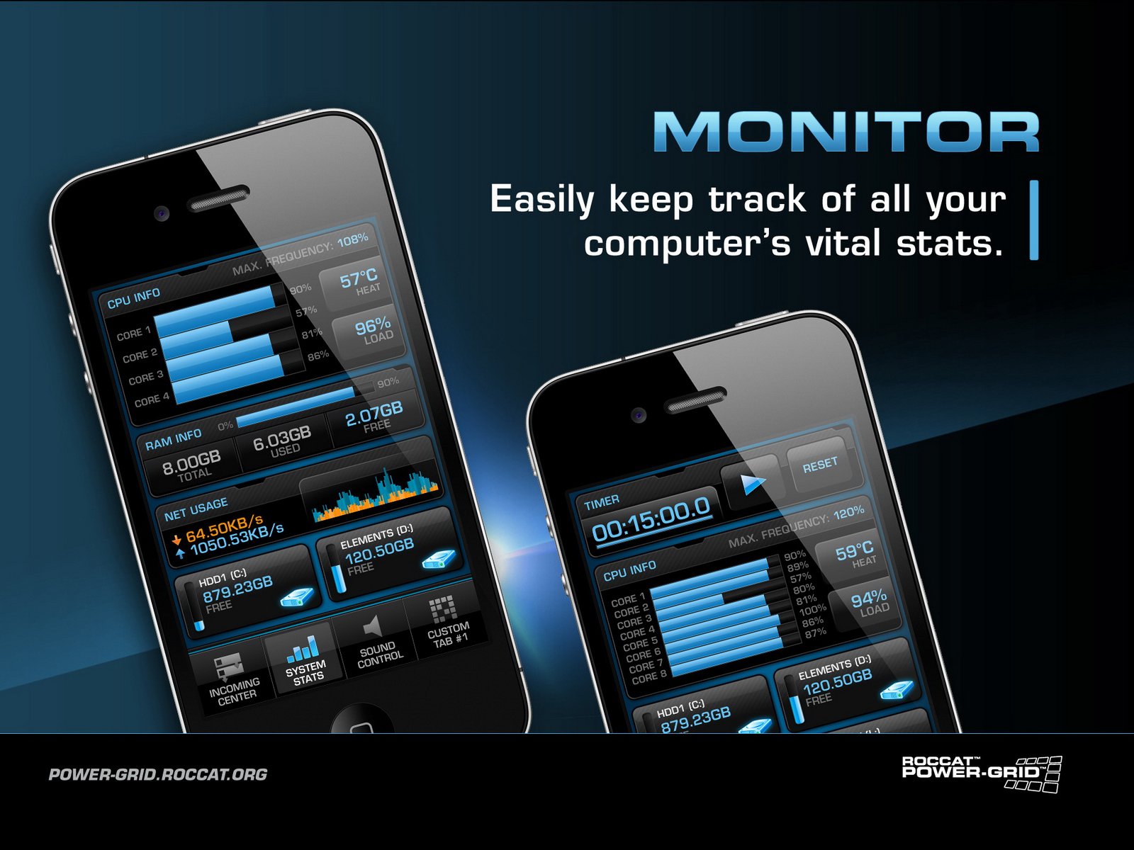 Neben der App Power-Grid muss auf dem PC die ebenfalls kostenlose Client-Software Power-Grid-Launcher installiert werden. Damit wird eine Verbindung zwischen Smartphone und PC hergestellt. Ende 2012 werden die Spieler die Möglichkeit erhalten, ihr mit Roccat Power-Grid getuntes Smartphone auch mit Roccat "Smart Gear" zu kombinieren, einem neuartigen Gaming-Zubehör für ein völlig neues Spielerlebnis.